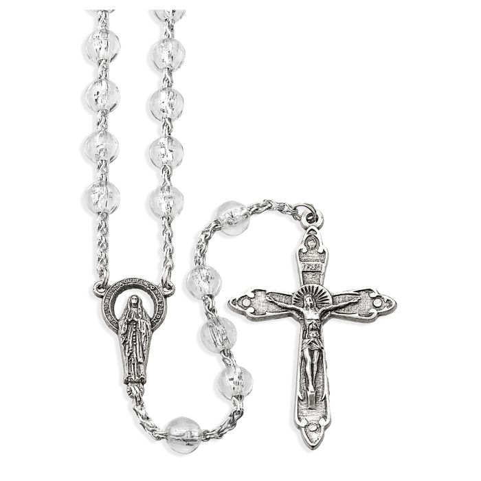- 7mm Clear Acrylic Multi Faceted Quadruple Link Bead Rosary.