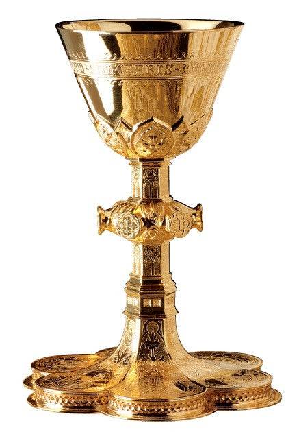 #2990 Gothic Style Chalice & Scale Paten | 8 3/4", 13oz. | Sterling Silver | 24K Gold Plated