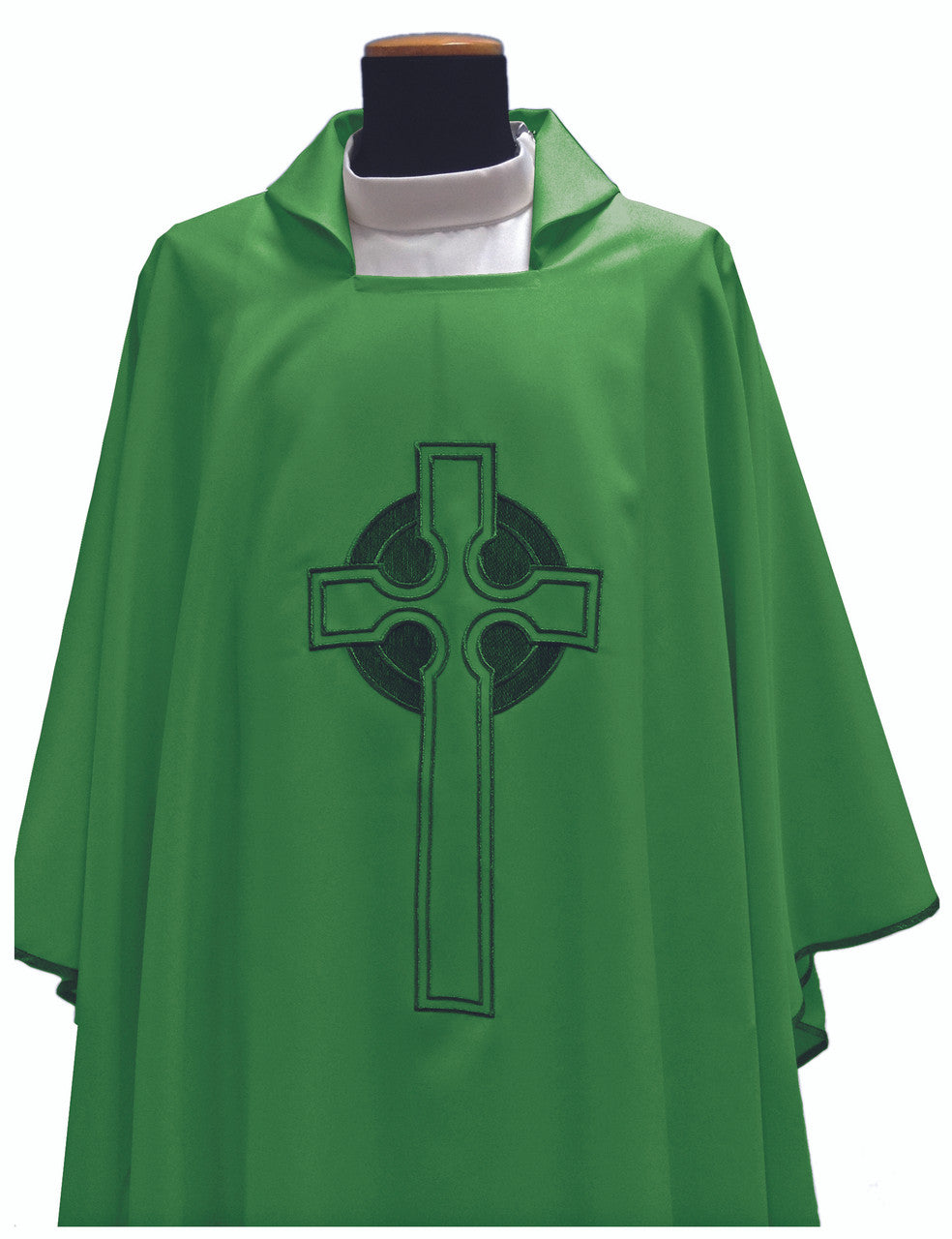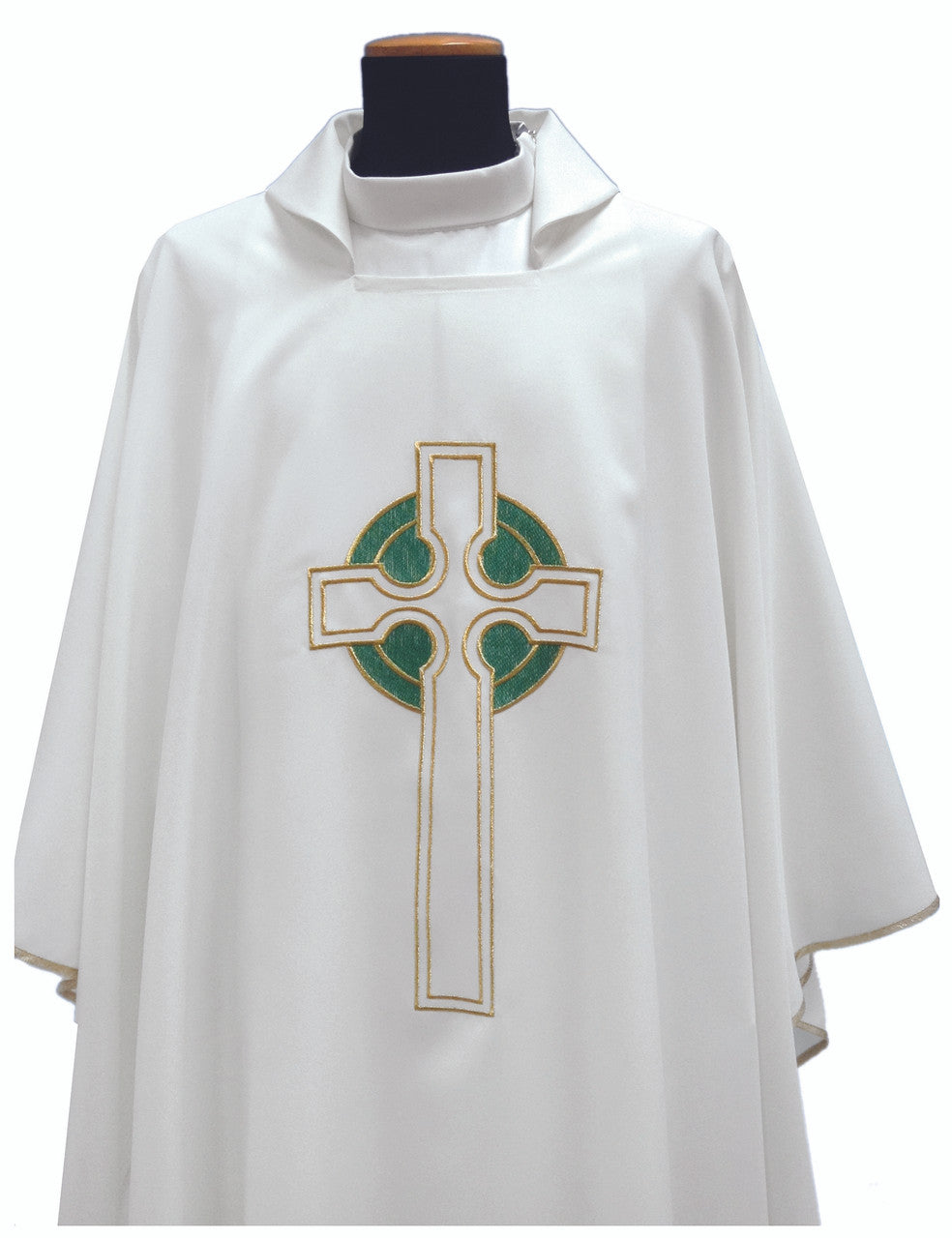 #347 Celtic Cross Chasuble | Square Collar | 100% Poly | Green & White