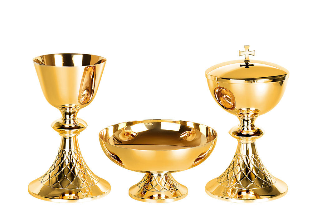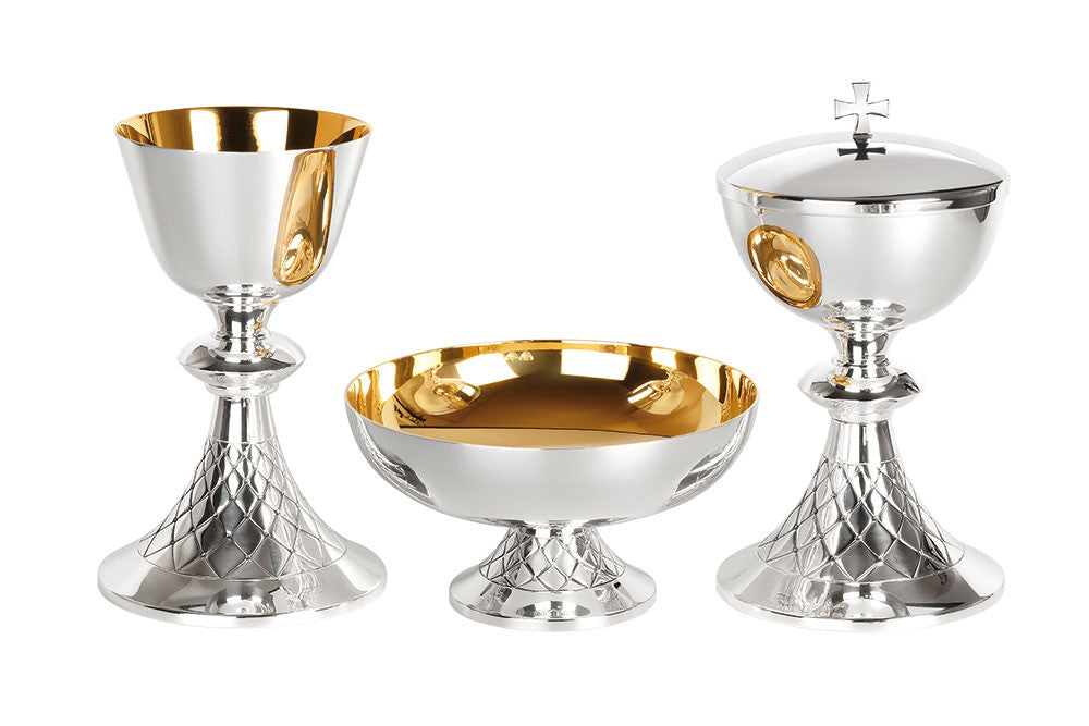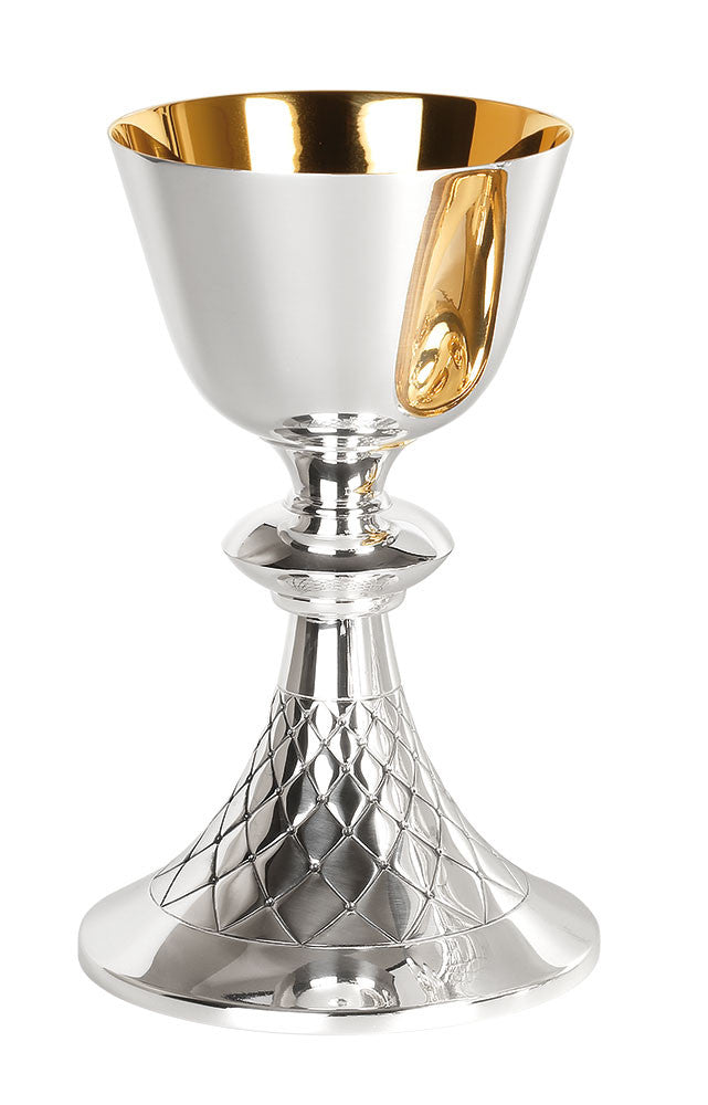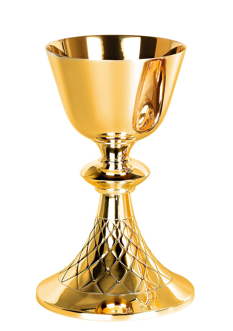 #5425 Hand-Chiseled "Net" Design Chalice & Paten | 7-7/8", 14oz. | Multiple Finishes Available