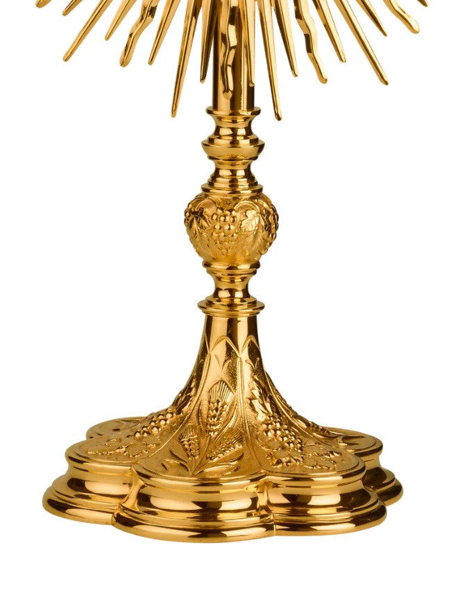 #5539-A Large Wheat & Grape Monstrance | 24K Gold-Plated | Handmade In Spain | Holds 5-3/4" Host