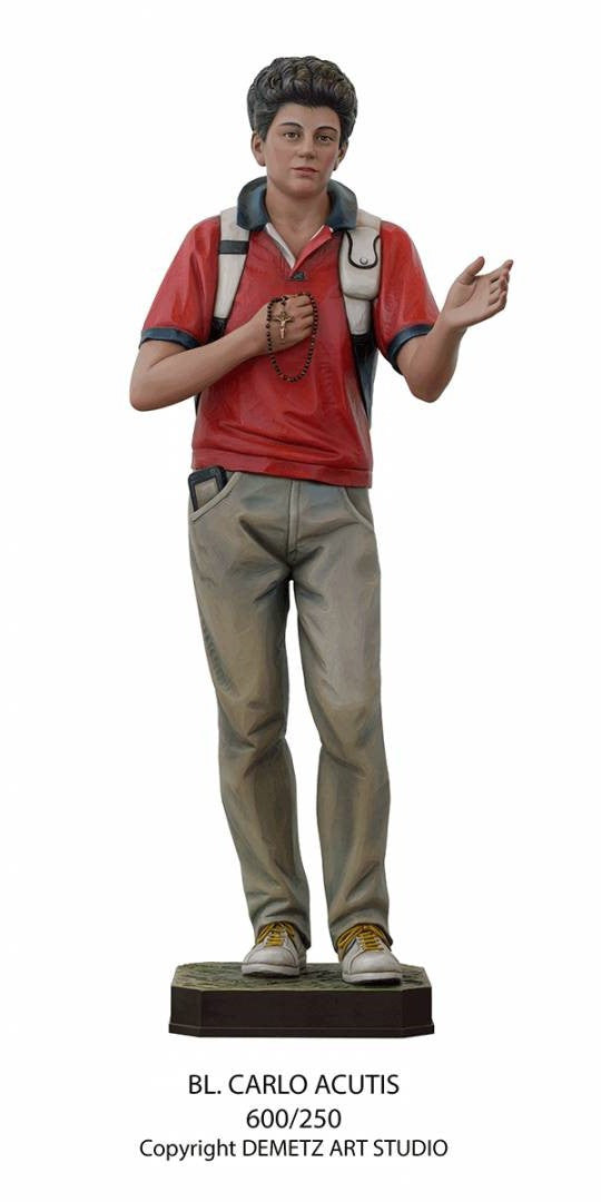 The #600/250 St. Carlo Acutis Statue is available in multiple sizes and finishes