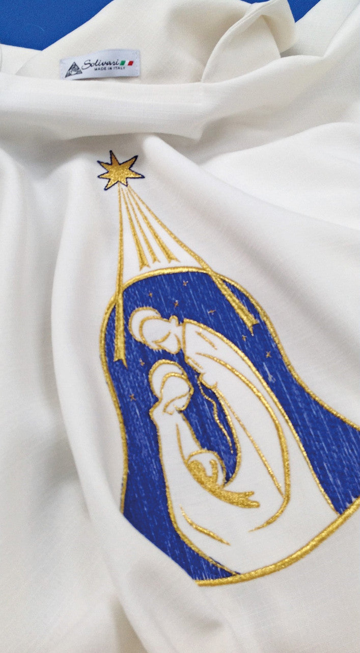 Solivari, based in Bergamo Italy, has been a liturgical tailor and expert in ecclesiastical clothing for four generations. Solivari specializes in designing and manufacturing liturgical vestments by combining their historical experience of hand embroidery with new technology to provide customers with an extensive, high quality line of products.