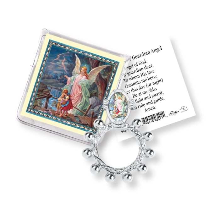 - Guardian Angel Finger Rosary with Crucifix on Reverse.