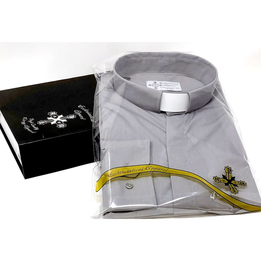 Ample Cut Grey Clergy Shirt | Tab Collar | Long Sleeve | Poly/Cotton