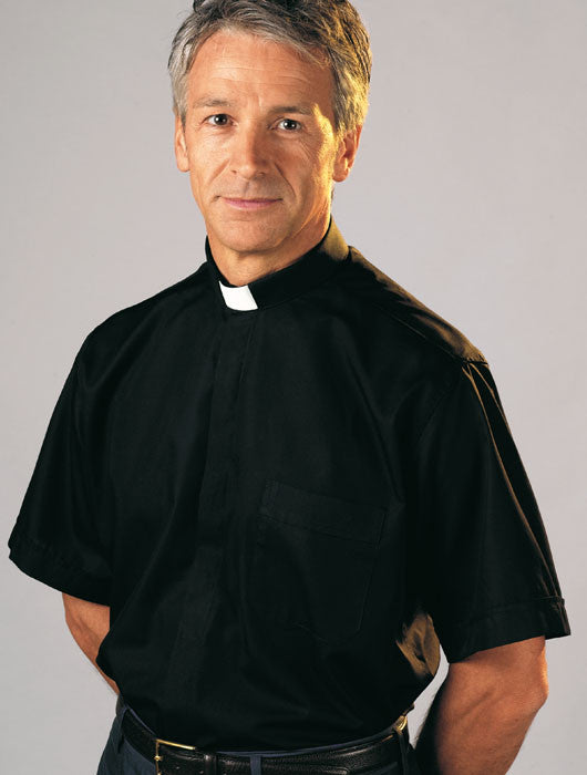 Slabbinck Classico dress clergy shirt with removable tab and short sleeves.