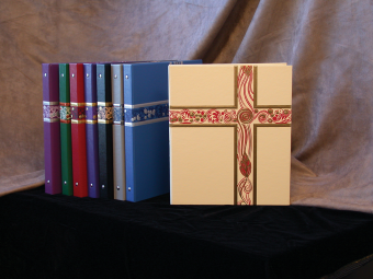These Ceremonial Binders are an attractive and durable solution for clergy and church leaders to use for intercessions, special rites, seasonal service programs, and general announcements, for choirs to keep and display their music, and for church musicians to assemble each week’s accompaniments. For not much more than you would pay for simple black vinyl binders, you can have these stunning binders designed especially for use at worship.