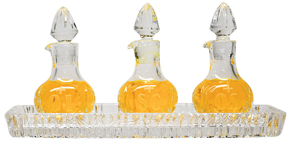 - Hand-cut imported crystal Ambry/Chrismal Set