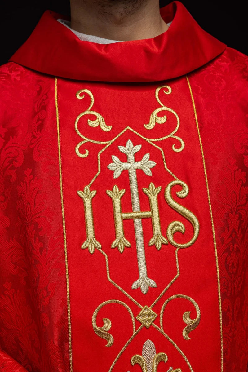 #KOR/268/02/67 Ornate IHS Chasuble, Red