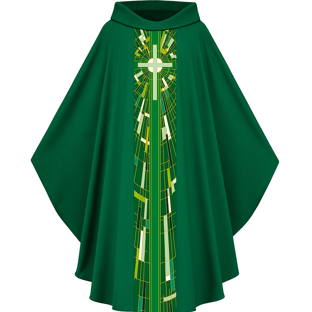 This lightweight Pius Chasuble is perfect for warmer weather and features a modern, yet classic, cross design.
