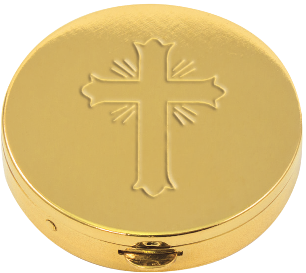 Gold plated pyx allows you to safely transport the Body of Christ.