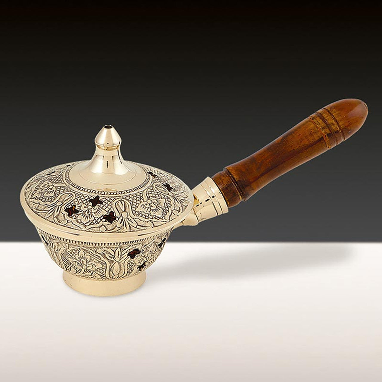 This incense burner with wood handle is simple yet elegant in style and would make a great addition to any sanctuary or home setting. This ornate incense burner from Sudbury Brass™ is exclusively designed and crafted using only the finest materials for many years of use.