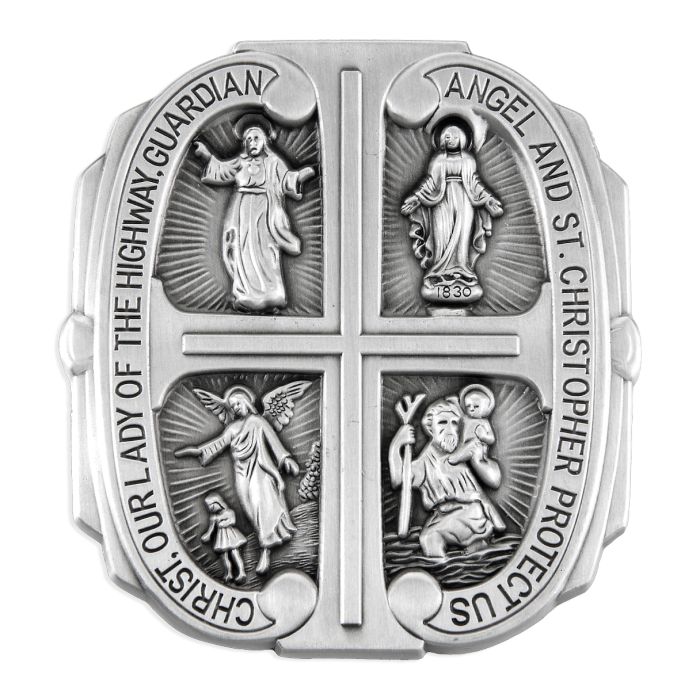 - Inscribed with: Christ, Our Lady of the Highway, Guardian Angel and St. Christopher Protect Us.