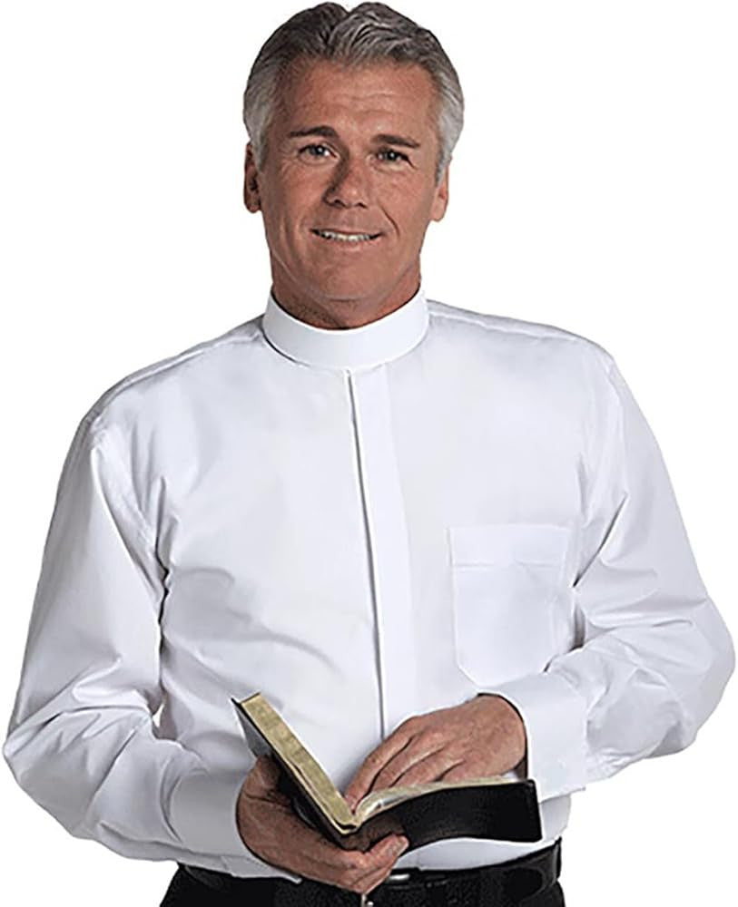 White Clergy Shirt | Neckband Collar | Long Sleeve | Poly/Cotton